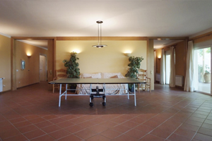 Salón (124 m2) con chimenea, cocina y zona de billar y ping pong,